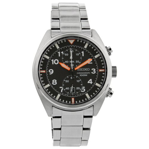Seiko Men's SNN235 Chronograph Black Dial Stainless Steel Watch Product Description:
