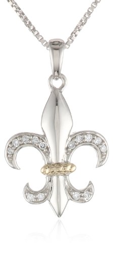 XPY Sterling Silver and 14k Yellow Gold Diamond Fleur-de-Lis Pendant Necklace (.09cttw, I-J Color, I2-I3 Clarity), 18" Product Description: