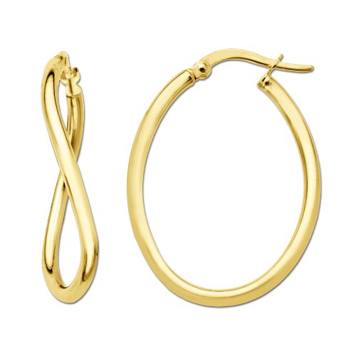Duragold 14k Yellow Gold Oval Twist Hoop Earrings, (0.75" Diameter) Product Description: