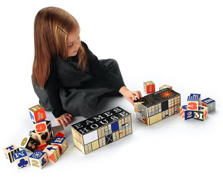 Eames House blocks form a puzzle image of this architectural landmark while showcasing the letters, numerals and symbols of the Eames century modern font collection. These blocks are handmade in the USA from michigan-grown replenishable basswood and printed with non-toxic, lead-free, child-safe inks.
