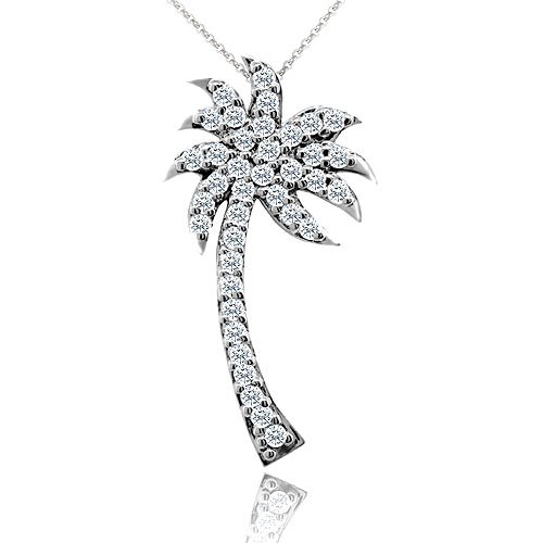 1CT Diamond 14K White Gold Palm Tree Pendant Necklace Product Description: