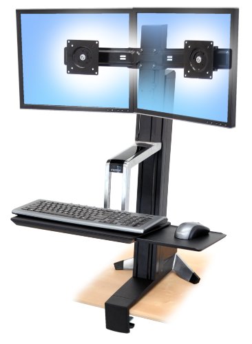 I decided I wanted stand-up desk to improve my health for two reasons: 1) there's some evidence that working out each day--hard enough to do as that is--doesn't compensate very much for sitting down at a desk all day; and 2) it stands to reason (no pun intended) that being on your feet helps your blood circulate more quickly through your brain and make you more intelligent while you're doing work on a computer.I looked into everything from the $1,000+ desks that rise and lower with a motor, to a DIY platform using InterMetro shelves. This was the best solution I came up with for my cubicle-like situation. At home, I have a secretary desk and put a yellow pages (yes, they still exist) as a platform for my laptop to get the same experience.Pluses: * Set up is reasonably easy. You'll need someone to help you (to hold the monitors while you fasten them to the workstation) but I got everything set up in about an hour and had no compatibility issues with my Dell monitors of one- and four-year-old vintages. * The raise and lower feature is nice as you're getting used to standing (you might feel sore or tired for days #2-4 if you stand up all day). I've only used it for a month so I can't speak too much to quality but the system seems well-engineered (Ergotron's primary customers seem to be hospitals, who are probably more demanding on quality than consumers) and raising and lowering is a matter of pushing moderately. * It just feels solidly built overall. At height, it doesn't have a latch to hold it at a particular level but there is still no wobbling or tilting.Minuses: * You may still wish that you could have your papers at the same height as your keyboard. * Taming the cables takes some trial and error in my experience and it's never going to look especially tidy. The box includes some zip ties but I recommend getting some reuseable (with a tab to release) ones to allow for experimentation. * You will look strange to some colleagues when you're standing up and I think you should consider if you have low cubicle walls whether this is worth it. * You will need to look closely at the dimensions to make sure it works for your situation. It goes back a little ways and at height may block cubicle cabinets.