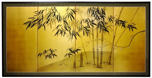Oriental Furniture Simple Classic Zen Asian Style, 4-Feet Long Japanese Sumi-e on Bamboo Gold Leaf Wall Screen Painting, 24 by 48-Inch Product Description: