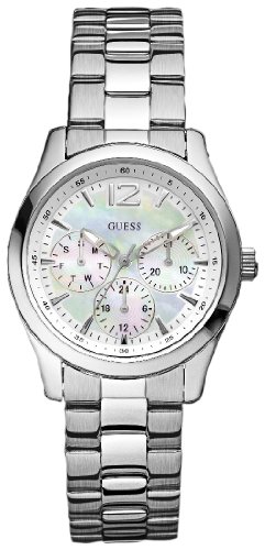 Guess Women's W11140L1 Silver Stainless-Steel Quartz Watch with Mother-Of-Pearl Dial Product Description: